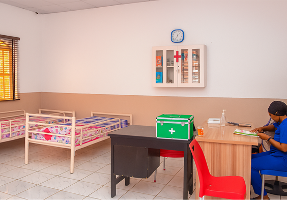 Pictured is a typical room in our female boarding facility, designed for comfort and study.