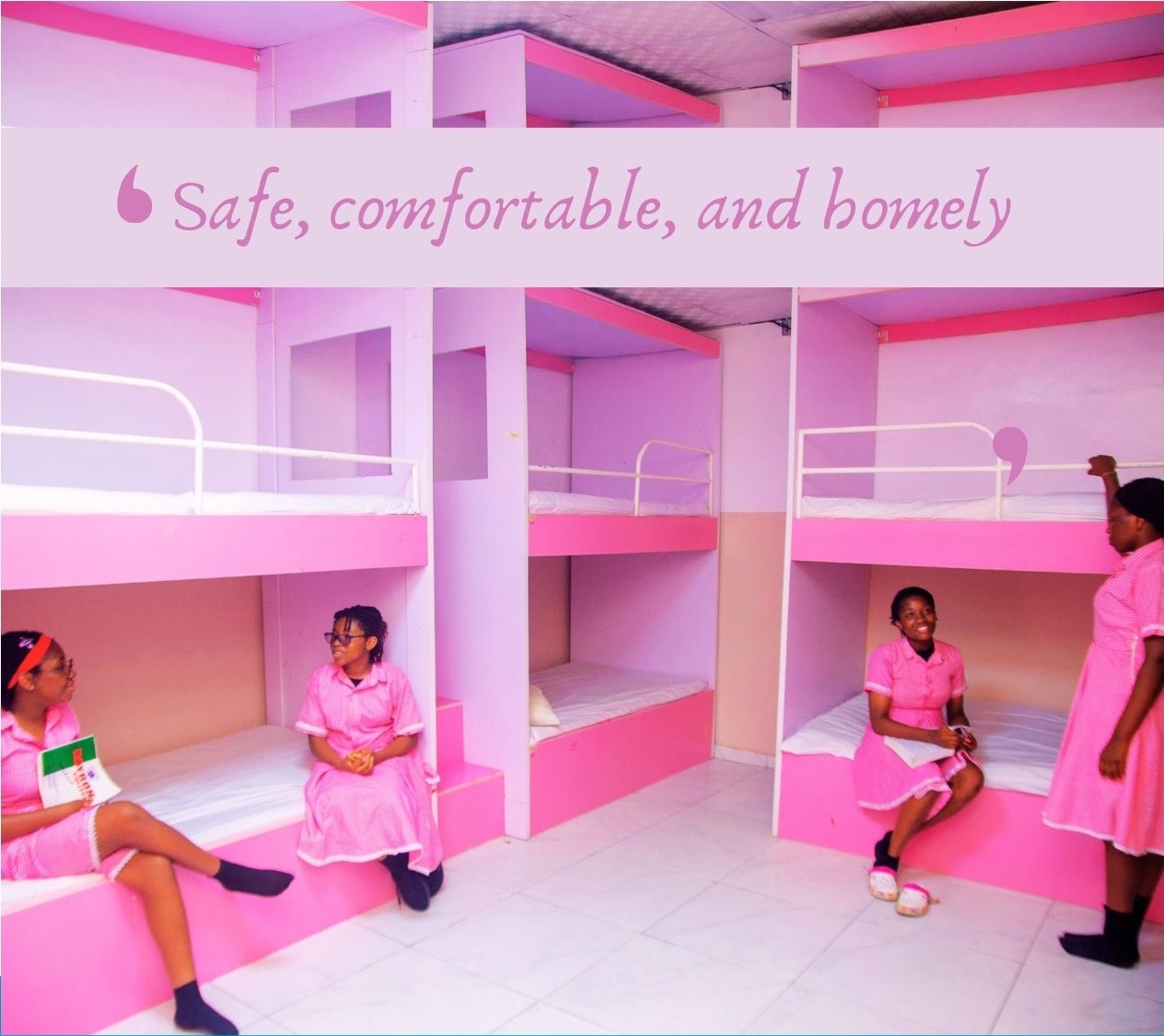 Pictured is a typical room in our female boarding facility, designed for comfort and study.